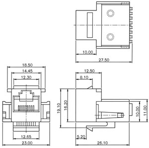 Keystone jack, 6 or positions, crimp type cover