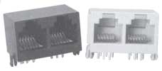Modular jack, side entry, single level, 2 or 4 ports, 6 pos., with or without flange, PCB