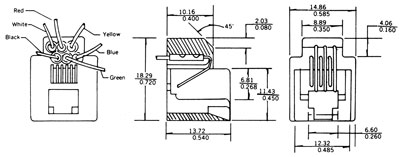 Jack, 6 positions, 4 or 6 contacts, with wire